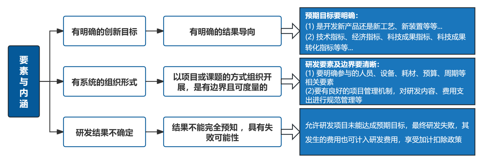 根据《研发费用加计扣除政策执行指引2.0》版本,研发活动判断标准必须同时符合以下三点: