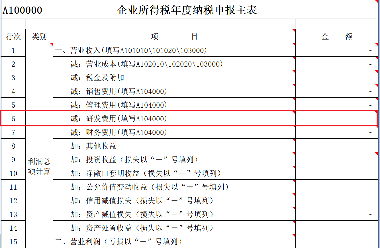 Ø A100000 企业所得税年度纳税申报主表——汇总体现研发费用总额。