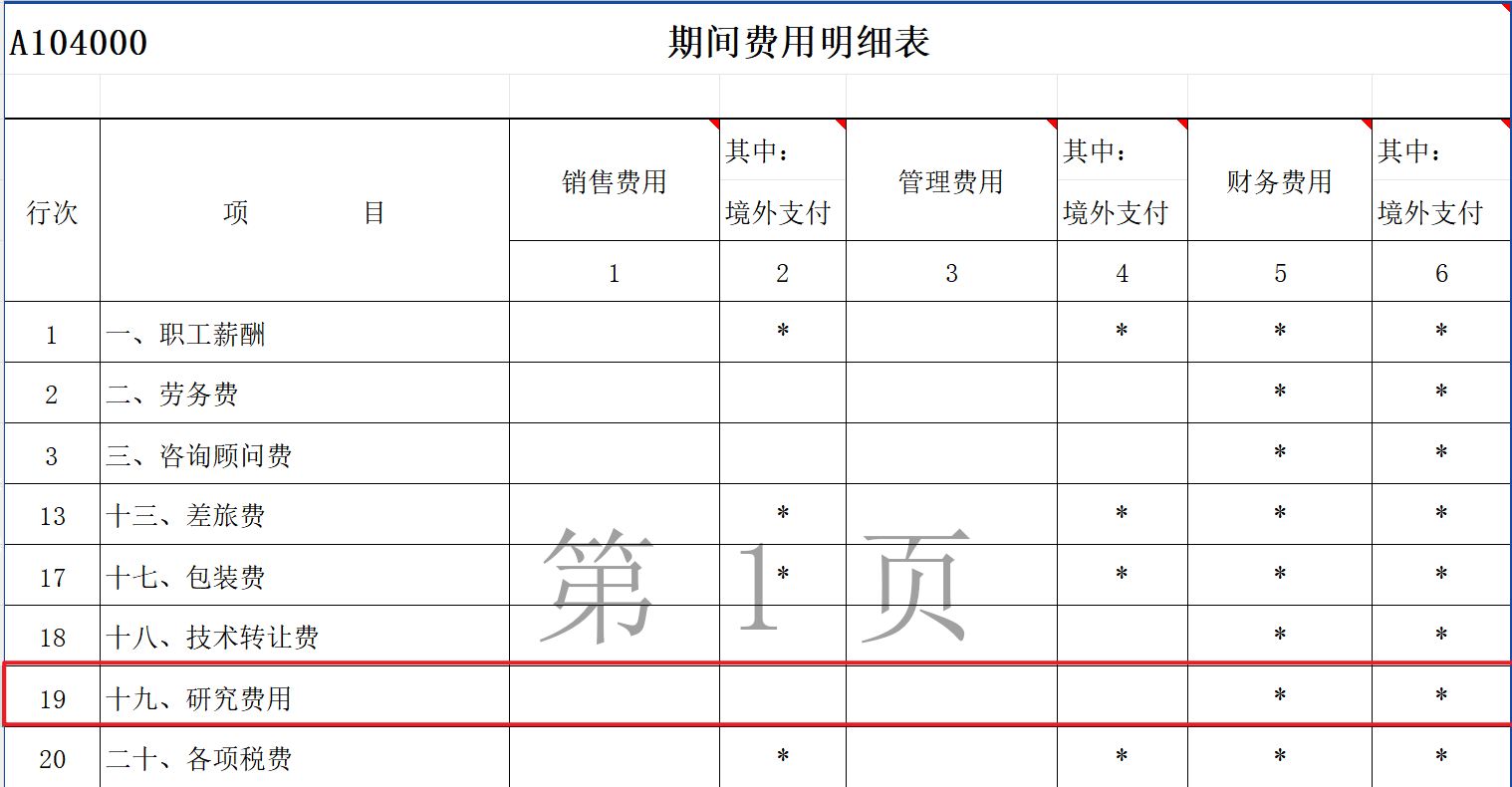 对于已执行《财政部关于修订印发2019年度一般企业财务报表格式的通知》(财会〔2019〕6号)的纳税人,在《利润表》中归集的“研发费用”通过《期间费用明细表》(A104000)第19行十九、研究费用的管理费用相应列次填报。