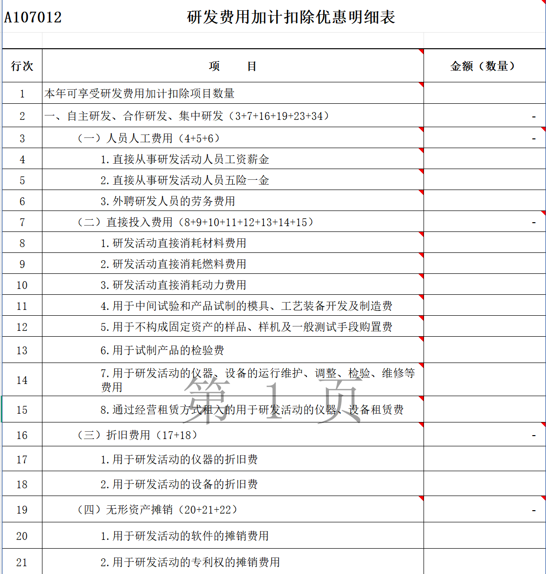 Ø A107012 研发费用加计扣除优惠明细表——计算加计扣除优惠的核心表格。