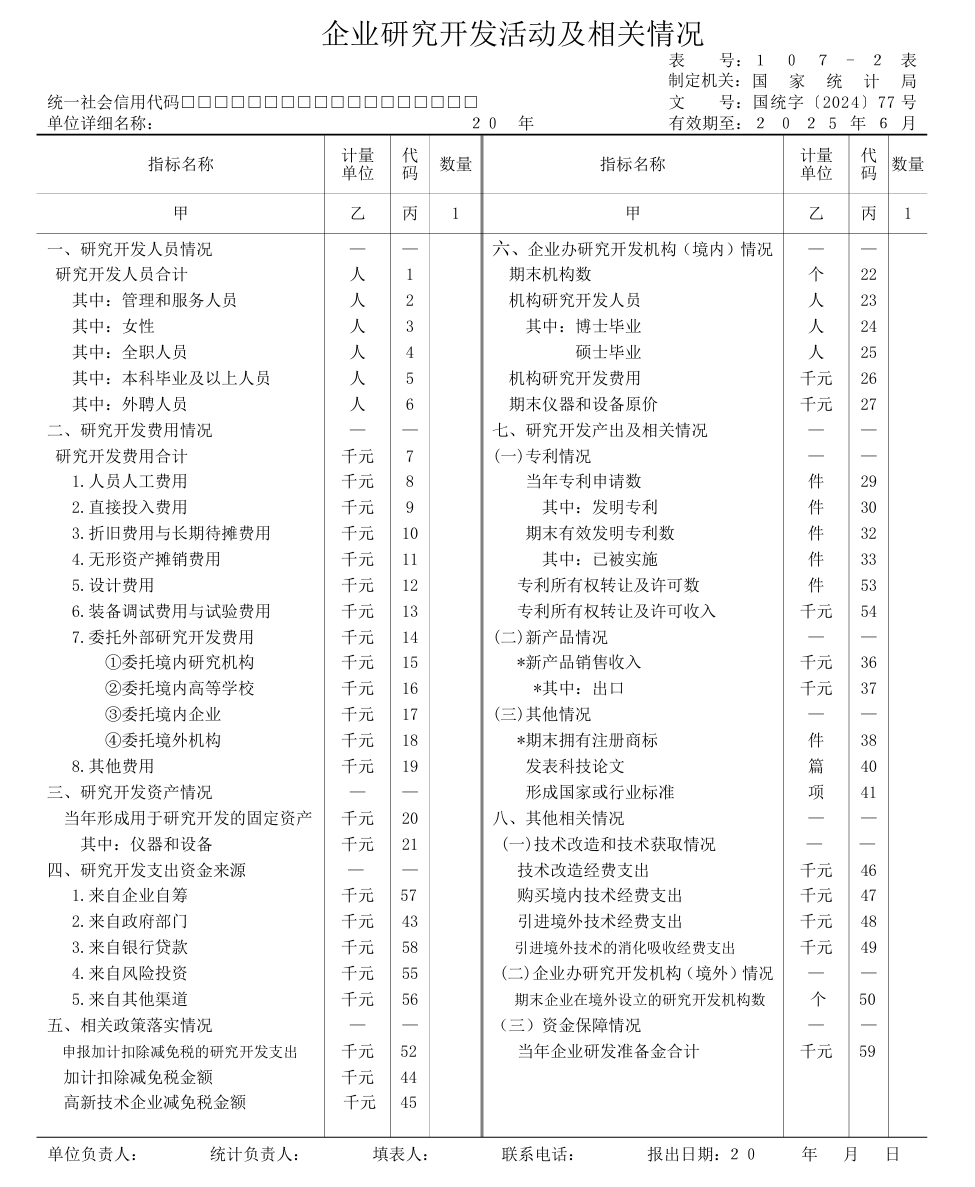 本表需要特别注意研发人员与研发费用的统计口径:研发人员包括直接从事研发活动的人员以及为研发活动提供直接服务的管理人员,应按全时当量统计。